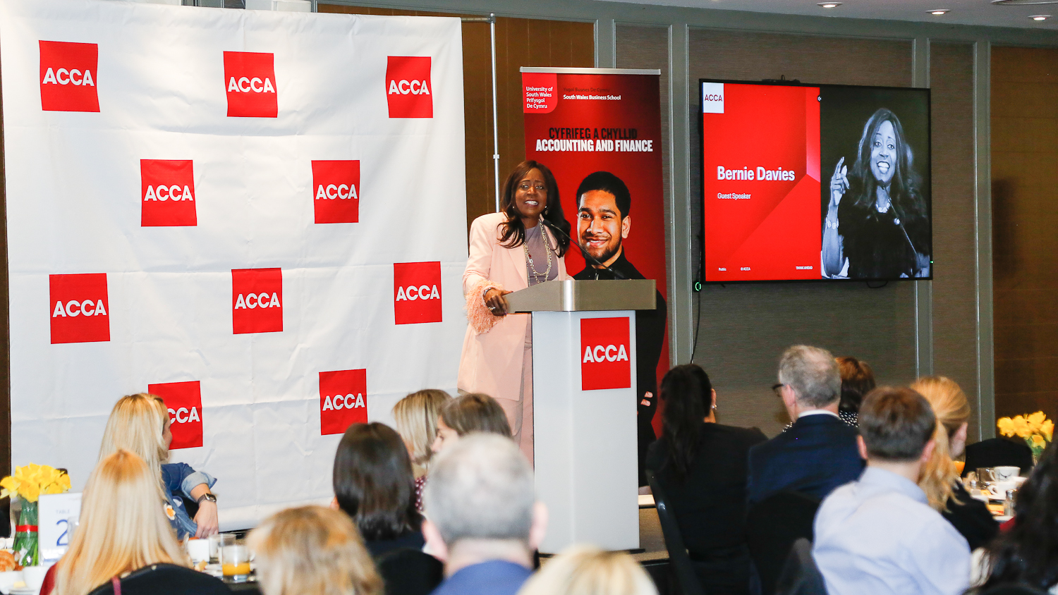 The St David’s Day networking breakfast organised by ACCA Cymru/Wales is a key event in the Cardiff business diary. Held at the Hilton Hotel in Cardiff, the event attracts the elite of the financial sector from across South Wales. This year’s breakfast was sponsored by Menzies, with the keynote address from Bernie Davies, a prominent serial entrepreneur, diversity and inclusion champion, and bestselling author based in Wales. Originally from Jamaica, she moved to the UK in 2000 and has since become a leading figure in the Welsh business community.